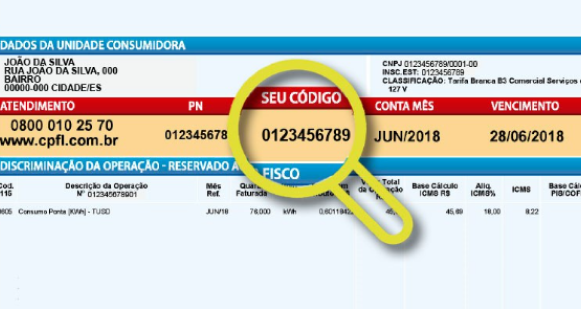 "Seu código" é referente ao código da instalação, e pode ser encontrado na sua conta de energia: