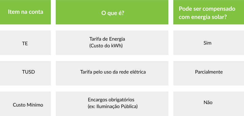 A energia solar reduz o valor da sua fatura, mas não zera completamente os custos fixos.