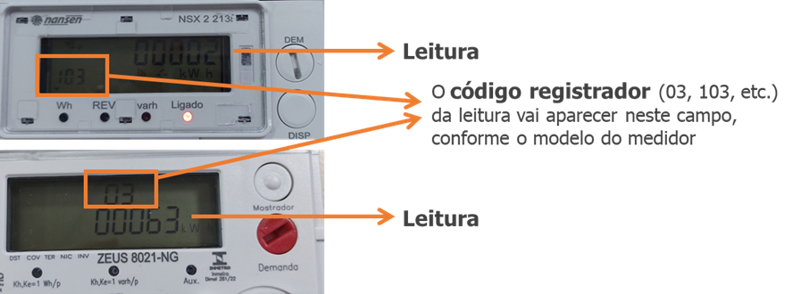 Nessa figura é possível ver onde fica o código e onde ver a leitura do medidor.